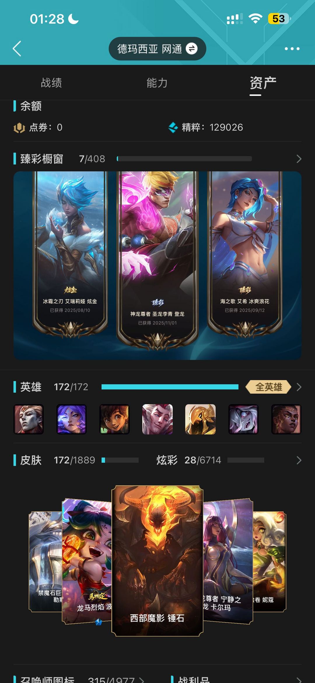 全英雄❤️臻彩女枪至臻皇子❤️情人节男刀❤️瑞文炫彩黎明❤️关羽+孙尚香❤️城市联赛冠军❤️展示不完