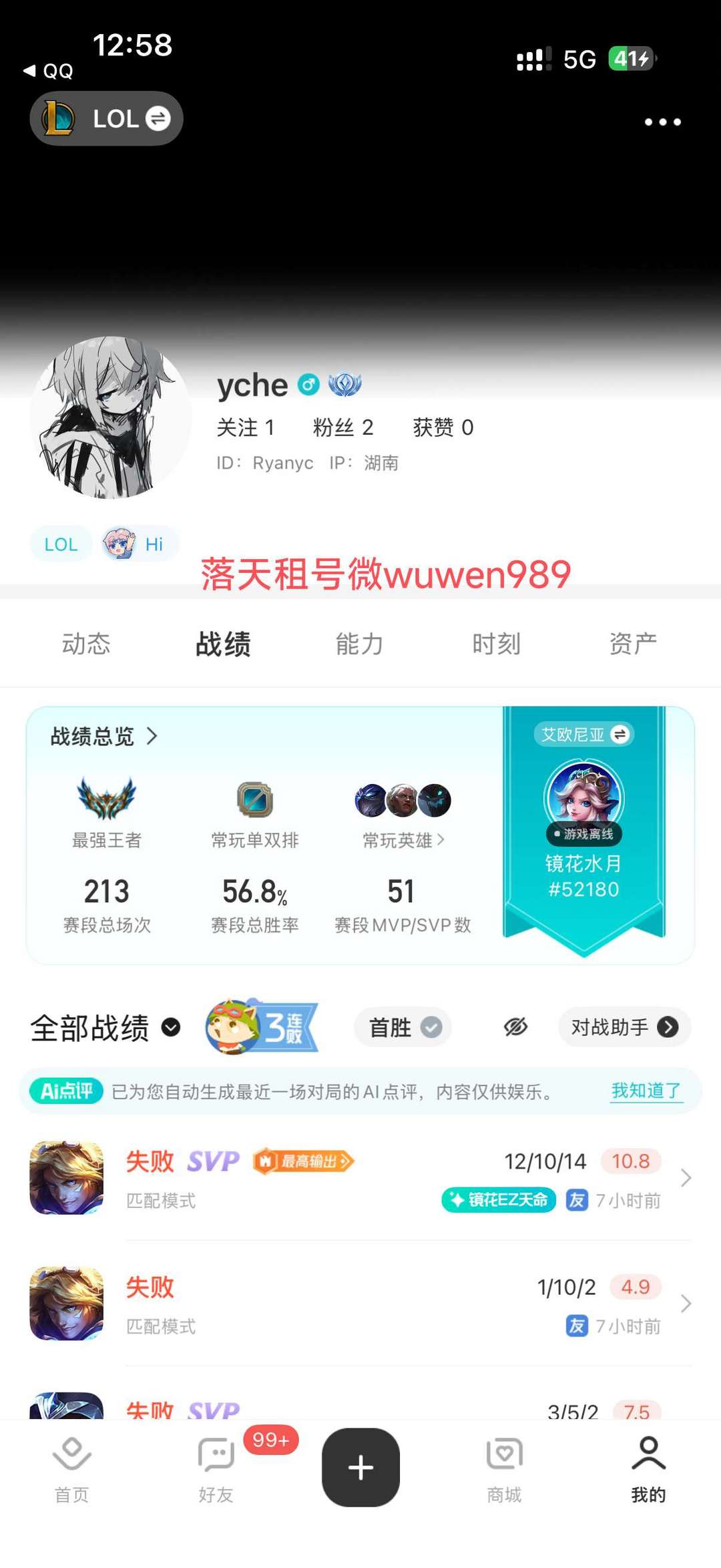 游戏区服:英雄联盟-艾欧尼亚-艾欧尼亚