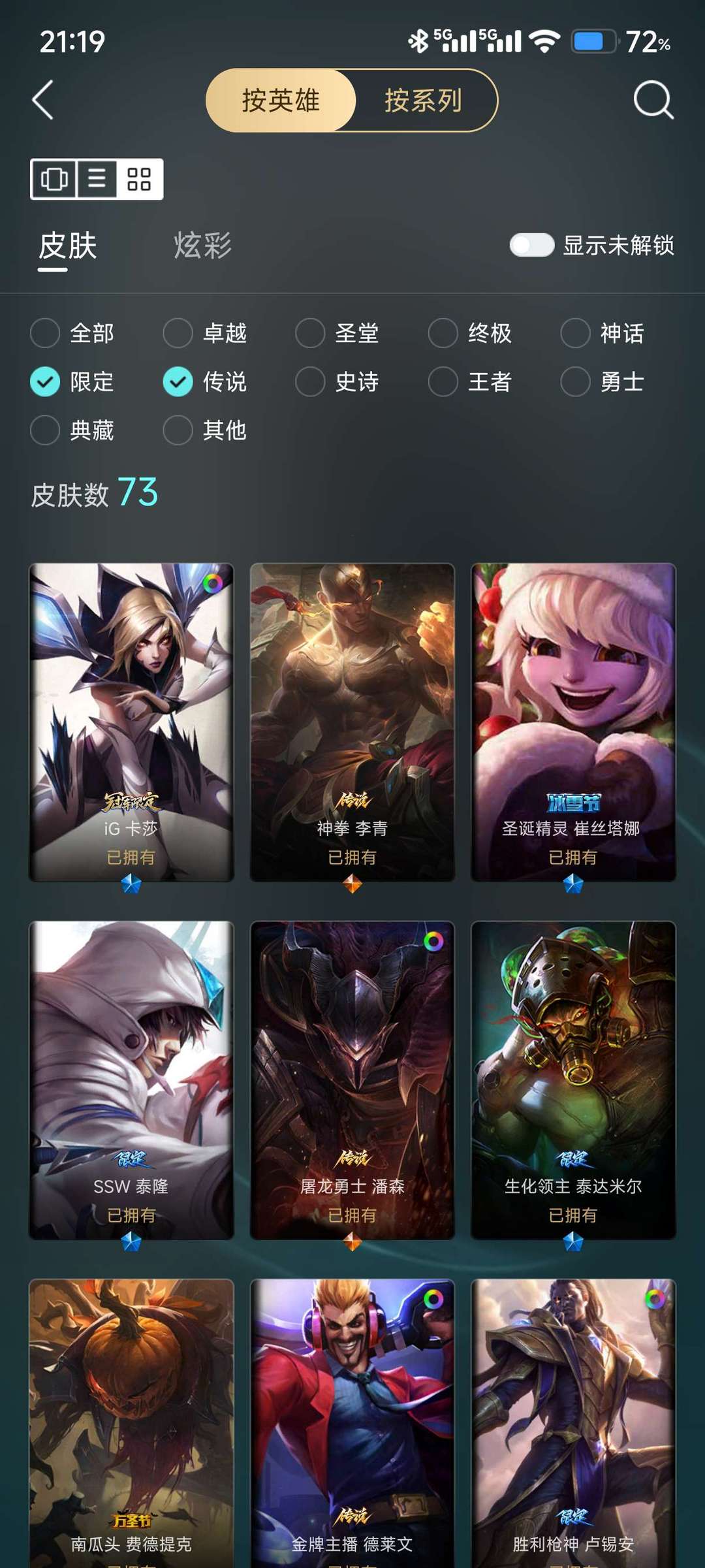 全英雄300多个皮肤热门英雄皮肤都有质量很高,战利品金币随便用