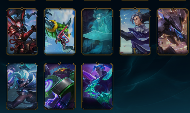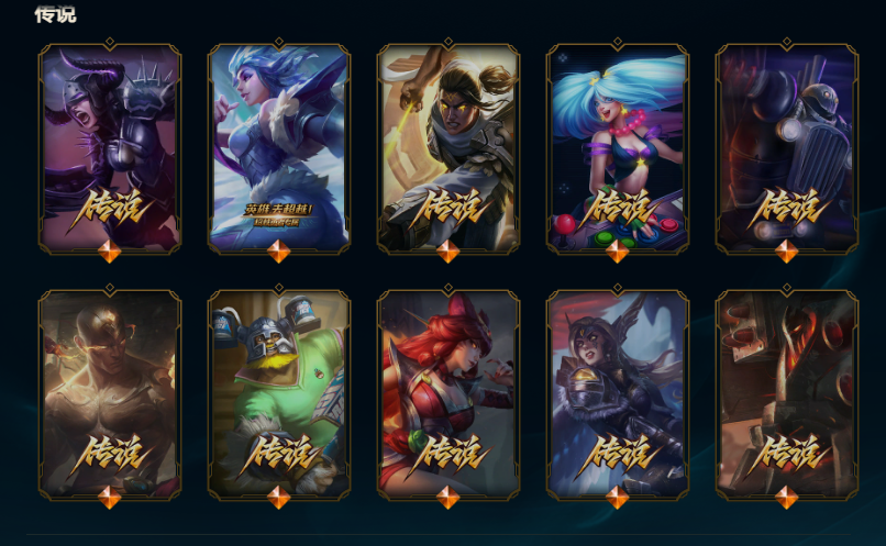 装备描述:IG刀妹剑姬、神拳盲僧、至臻锤石、海克斯乌鸦、fpx盲僧、冰雪节各种