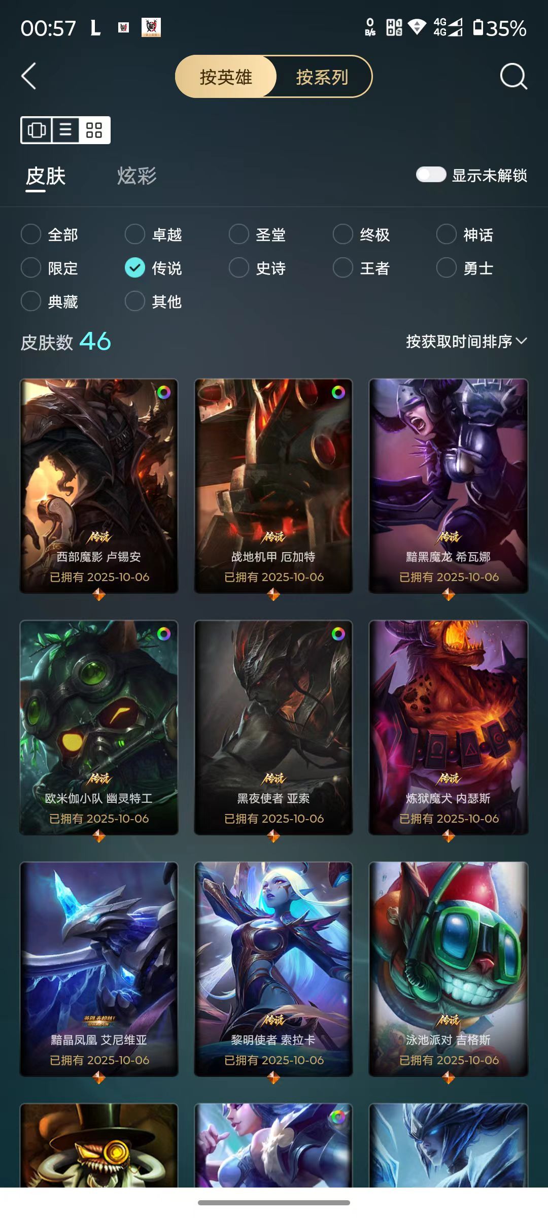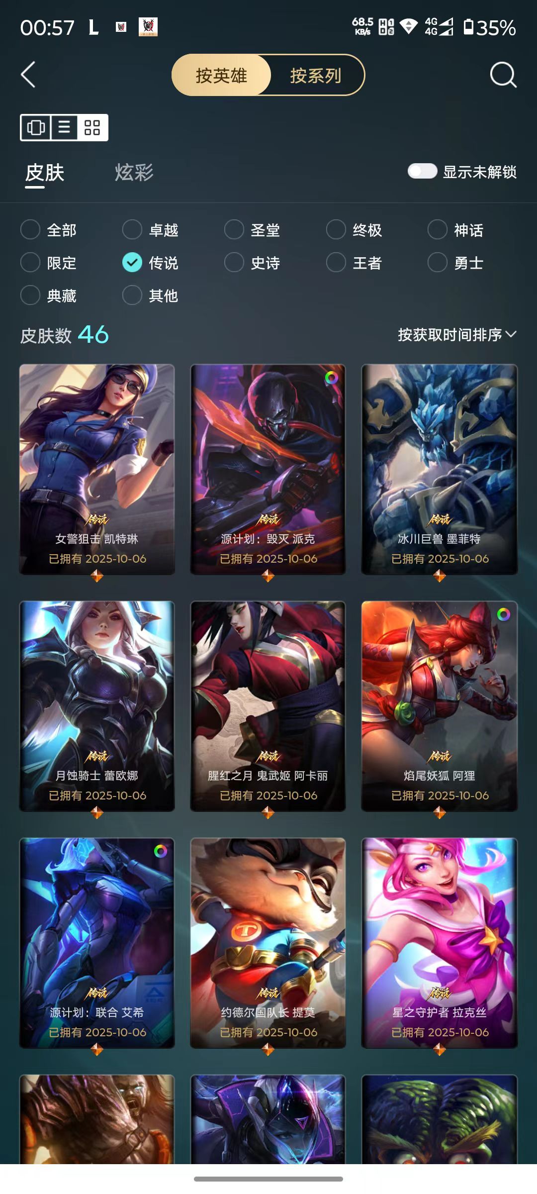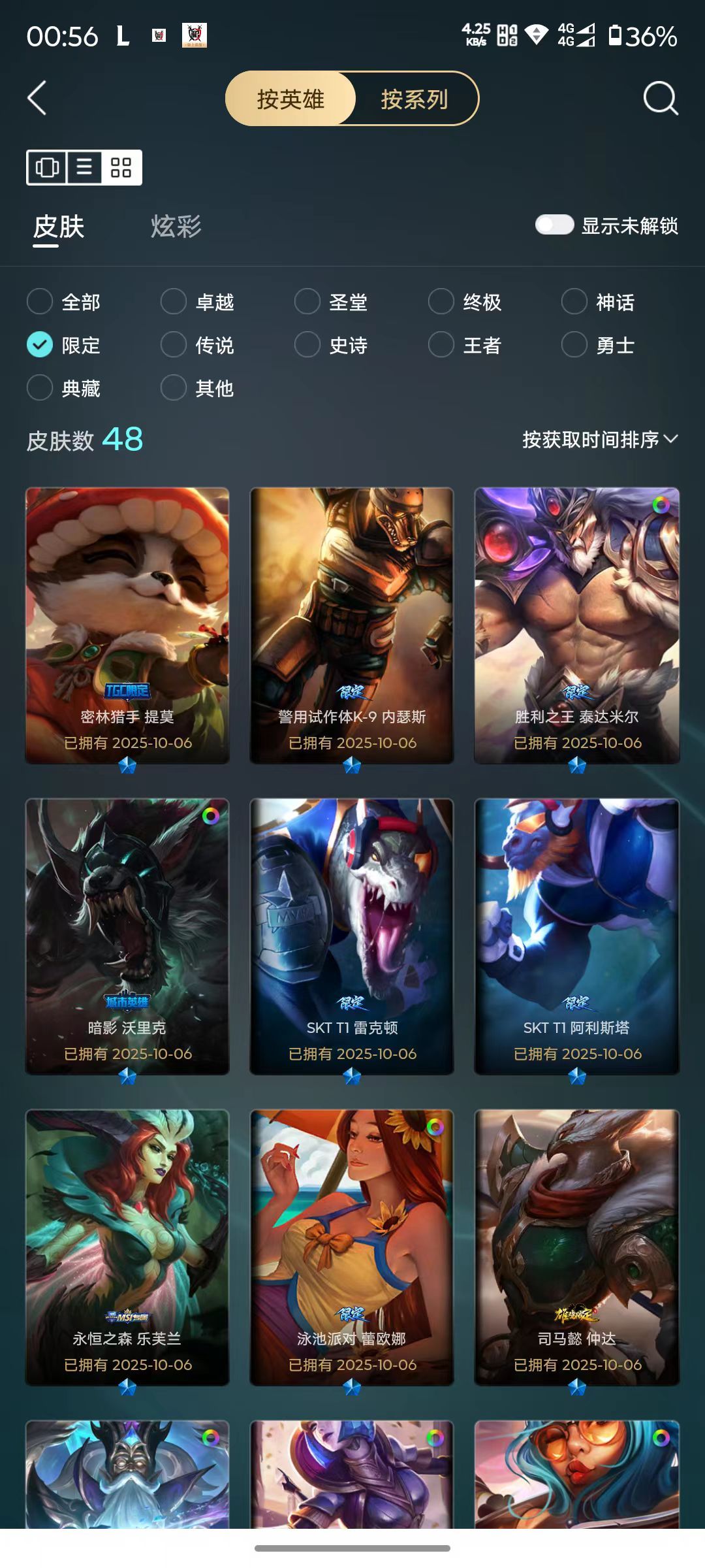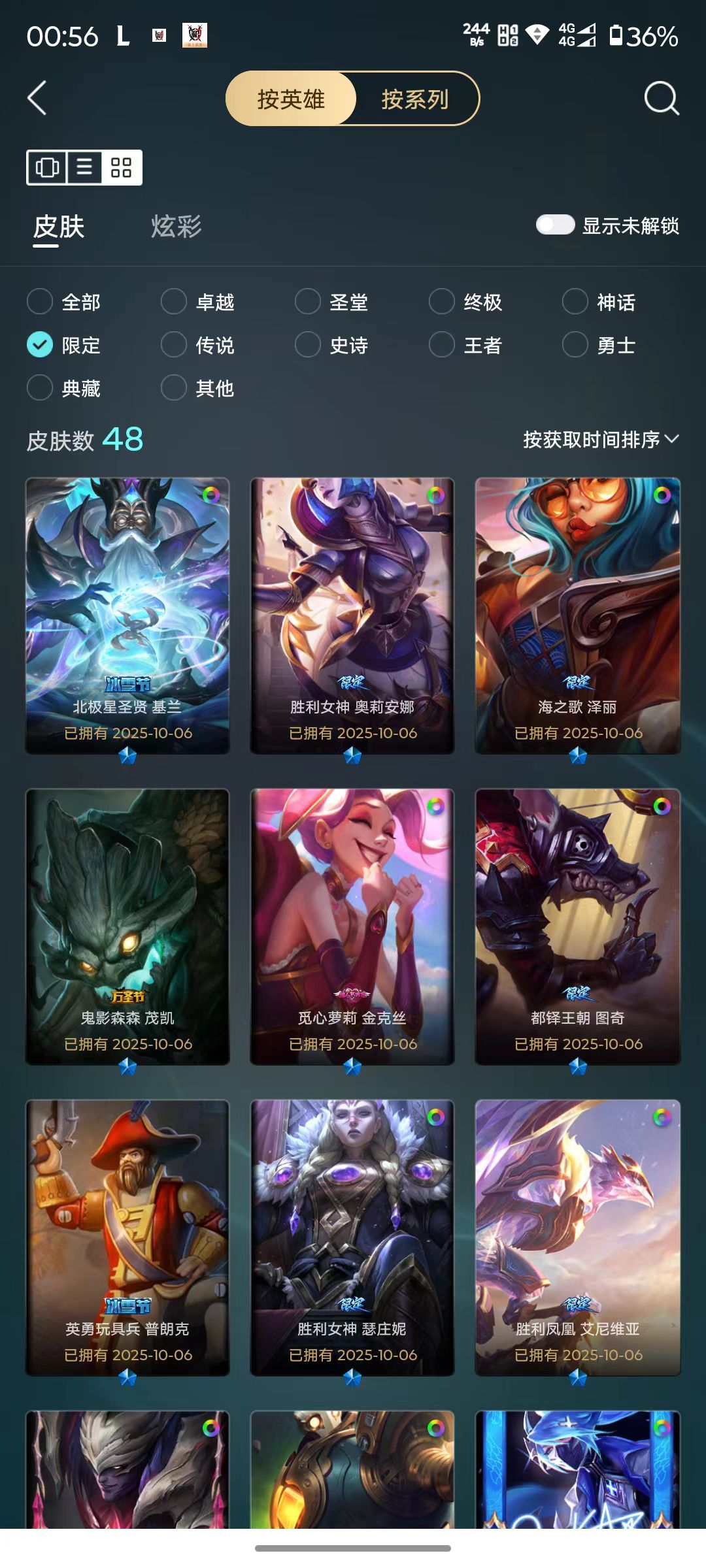 360皮❤️可排位/2终级❤️24神话❤️48限定❤️46传说❤️134炫彩❤️19臻彩