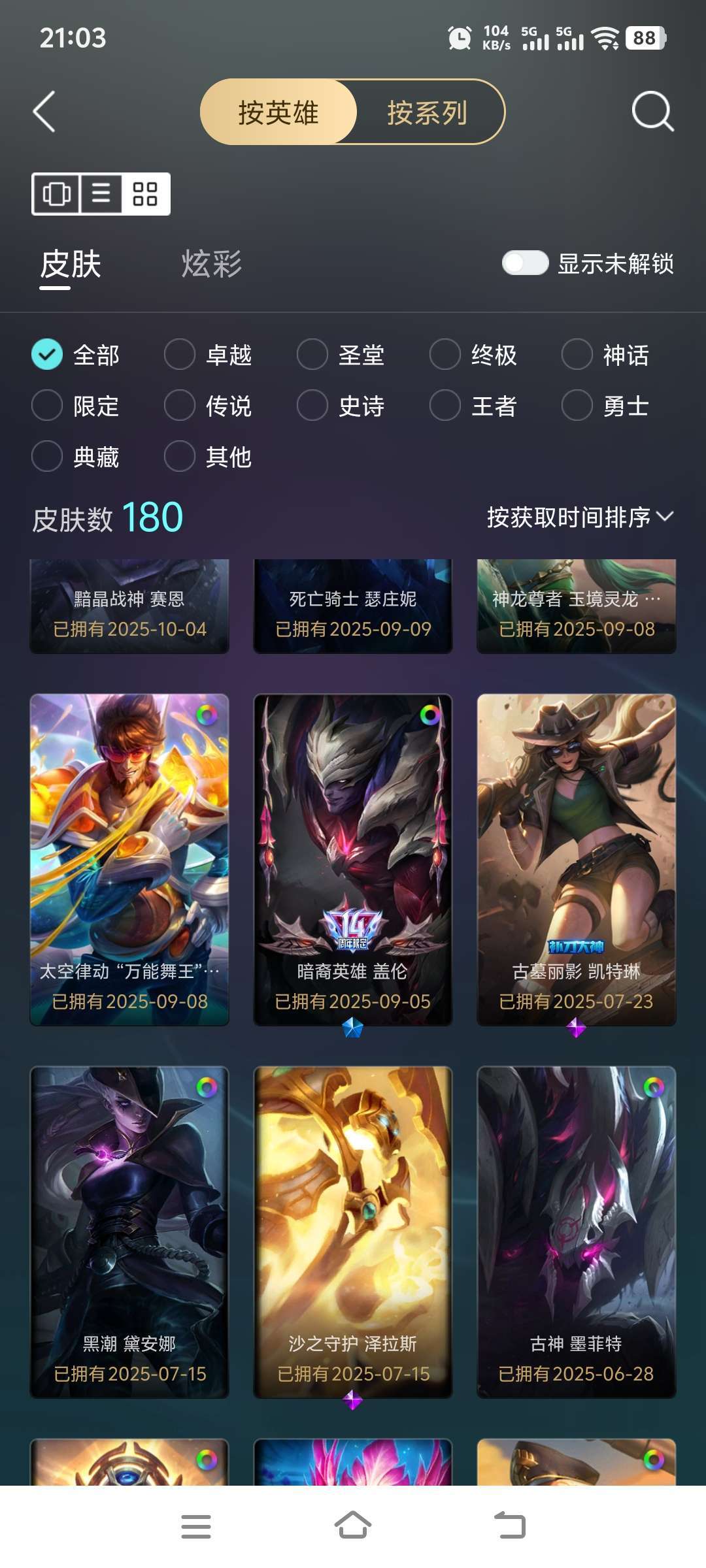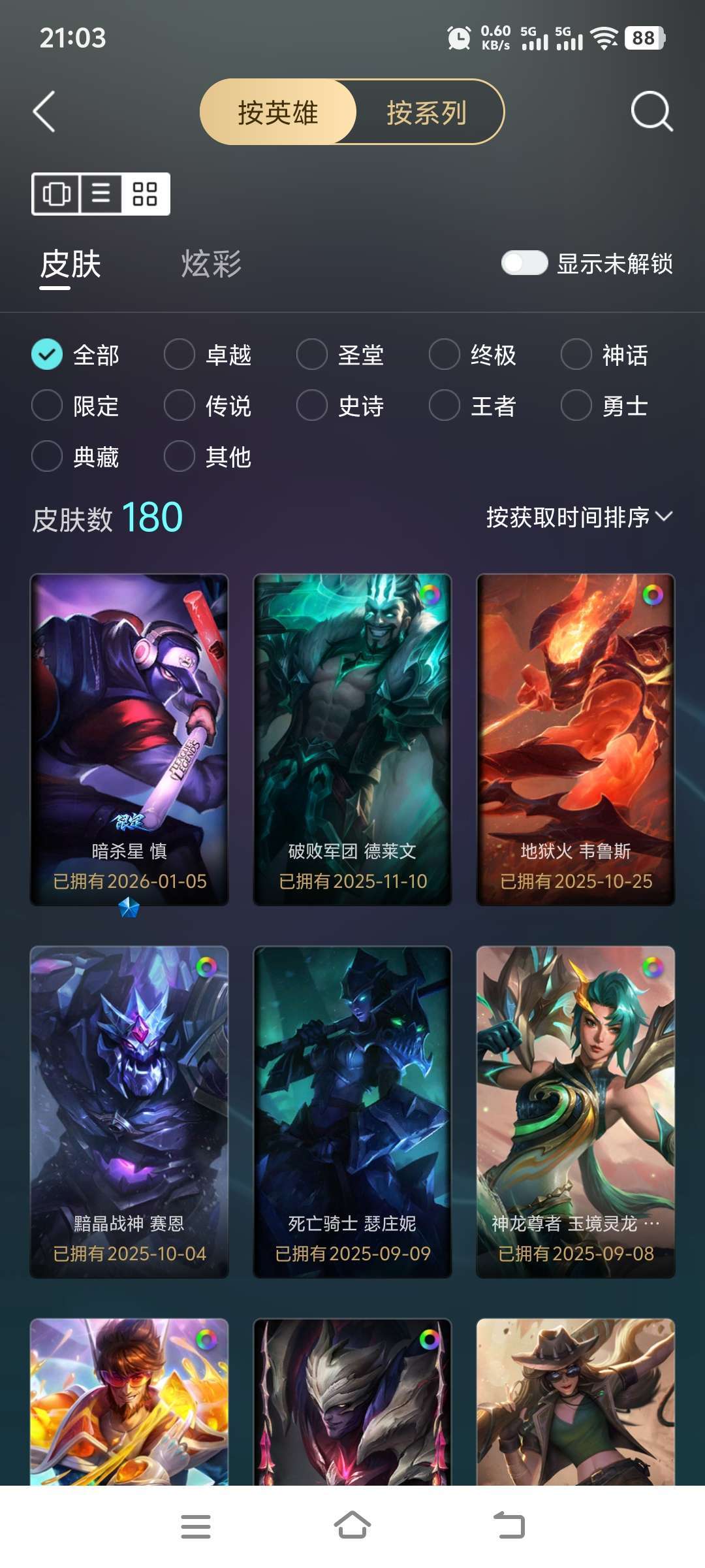 目前全英雄,出新英雄直接用蓝色精粹买就行了