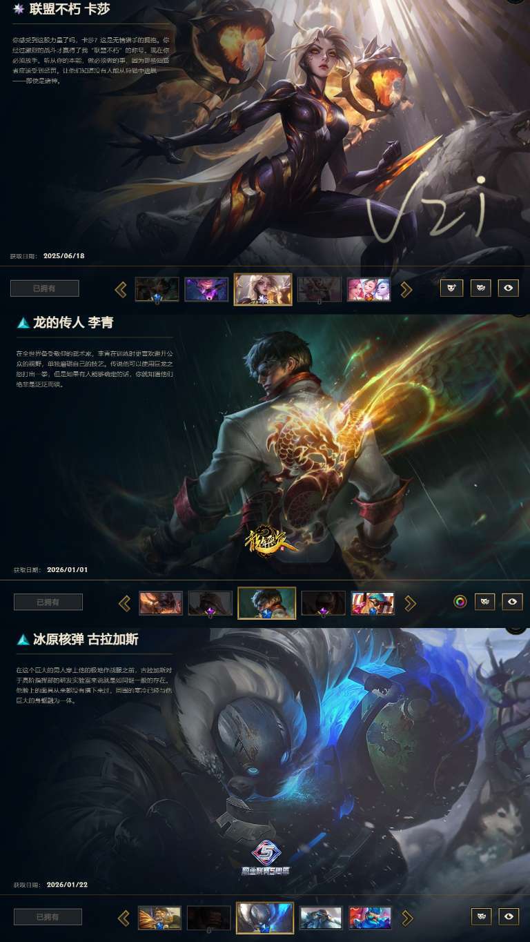 8888p❤️联盟不朽卡莎❤️紫色龙瞎⭐冰原核弹❤️圣堂金克丝⭐铁男❤️神话亚索盲僧劫
