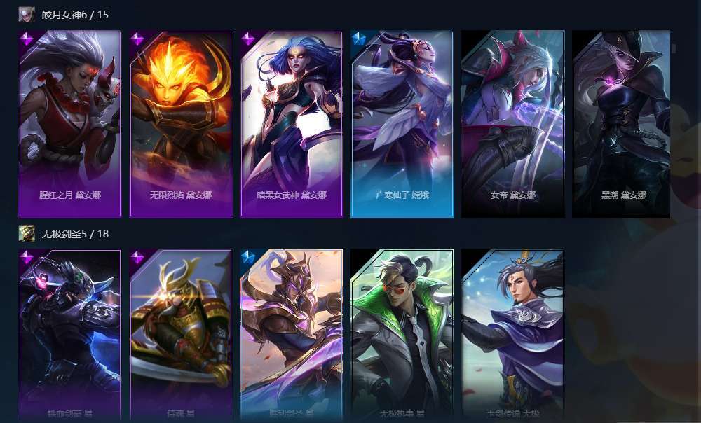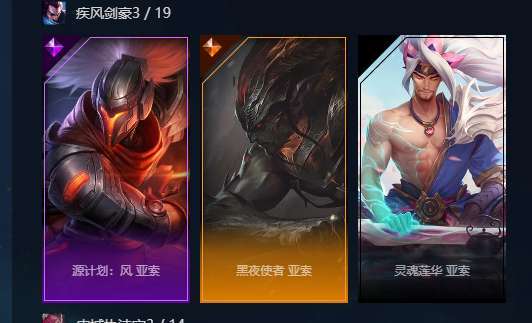 2终极,3神话,35限定,77史诗,神王盖伦诺手大元素使光辉,暗夜使者亚索,武装战姬厄运小姐