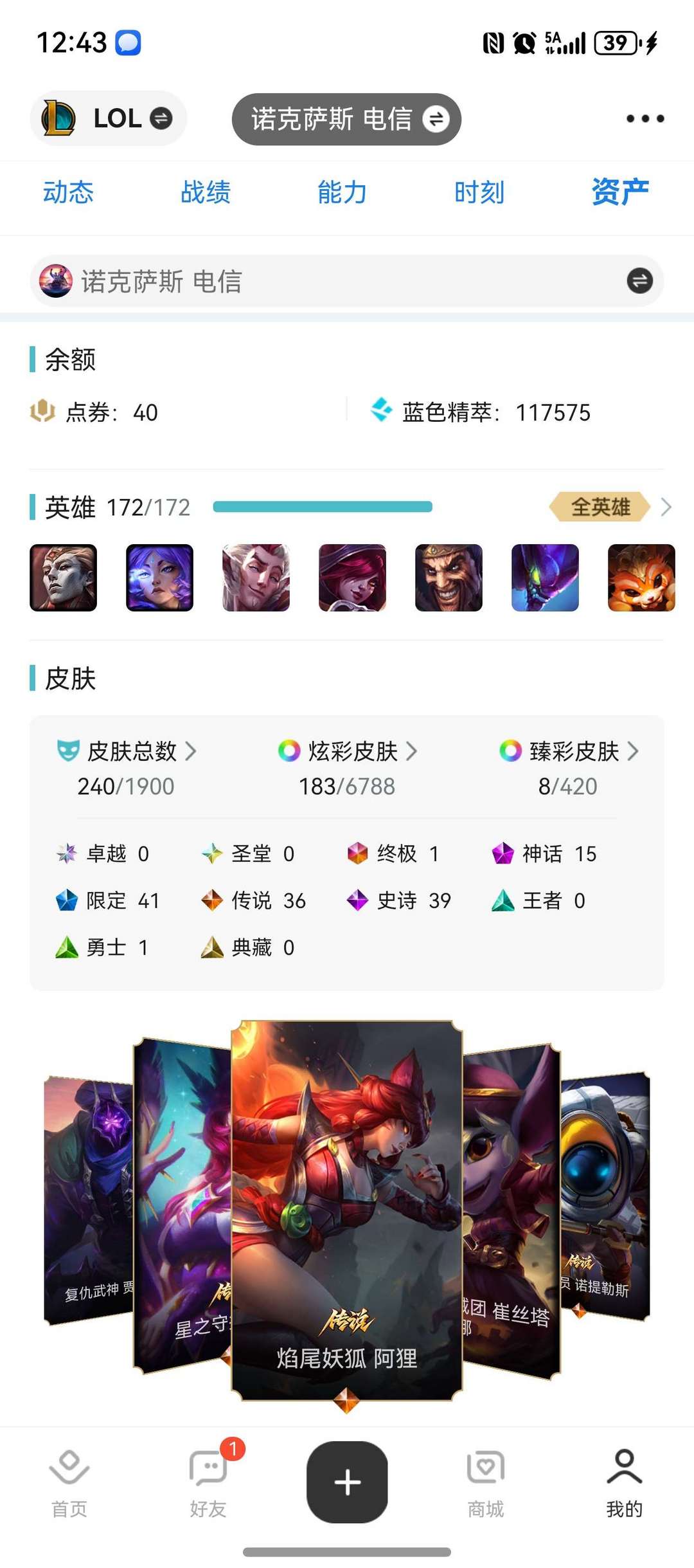 装备描述:240皮肤,183炫彩臻彩8个,龙虾账号 允许参加排位赛 完美体验