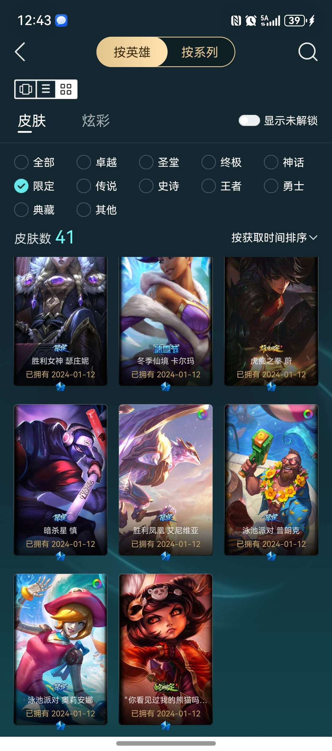 240P 限定皮肤41个 神话皮肤皮肤15个 允许任何游戏模式
