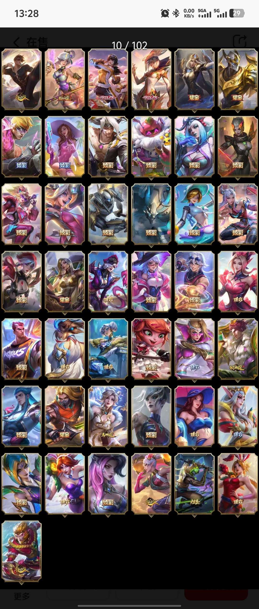 1288皮,全英雄,99神话203限定黑龙瞎,六个神话小小英雄,一个神话棋盘皮肤