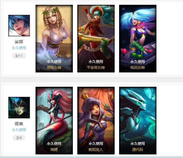 700+皮肤◆胜利女神全齐有风/龙瞎龙猴/仙剑男刀摄魂VN