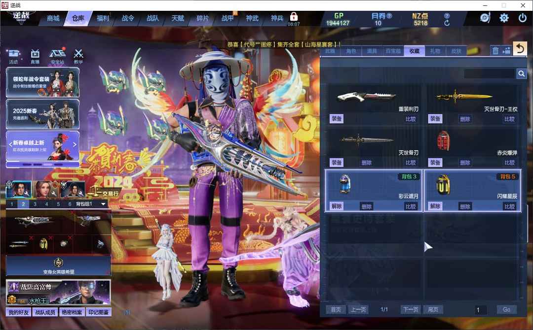装备描述:水枪王--1--52--星寰九件套/山海九件套/瑶光灵仙金福萌萌兽绯羽m233/塔防三英雄/星寰套/山海套/虎王套/天王/天王-白龙吟/械装红龙/奇变步狙/混沌/烈焰战神/火神炎帝/爆炎双铳/心灵特工/飓风之龙/天启-湮灭之影/极夜双星/极夜星辉/重装利刃/克雷格/丽莎/量子魔盔/龙魂之凯/凤栖神翼-归墟/朱羽双滦/五戒/瑶光灵仙/金福萌萌兽/绯羽/m233/天外来客/剑风/游侠/墨韵/赤炎钢虎/机械熊/小达古/小幽灵露卡/地狱犬/希亚/三卡永久/龙姬裁决女帝/绀蓝套/可排位/