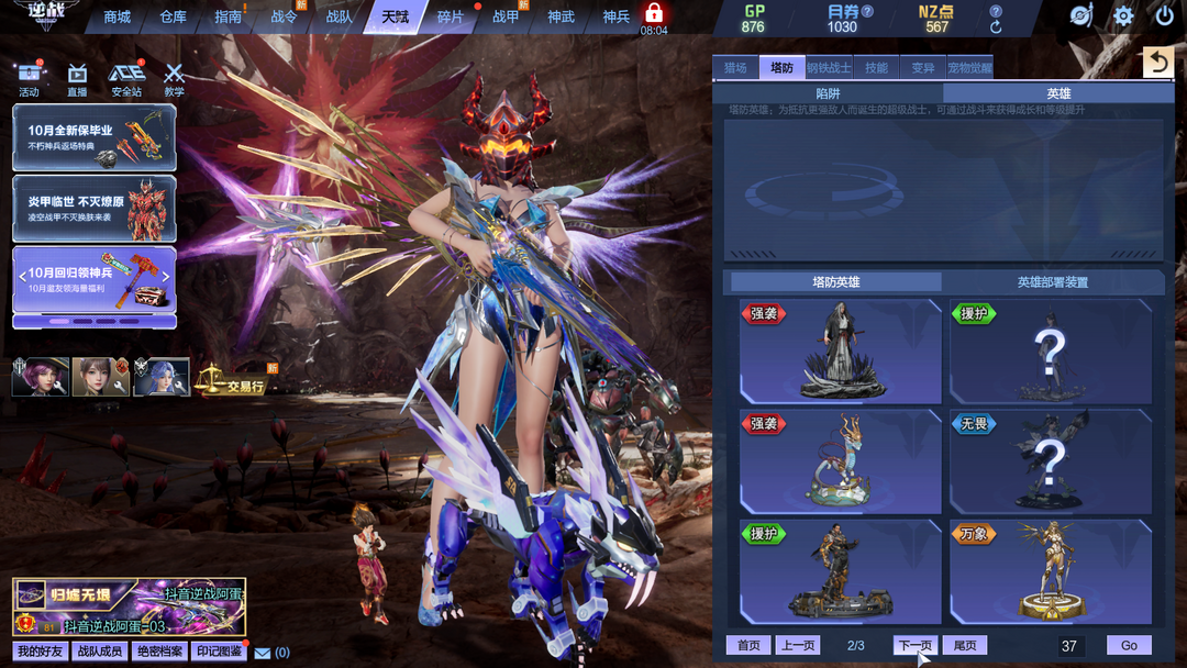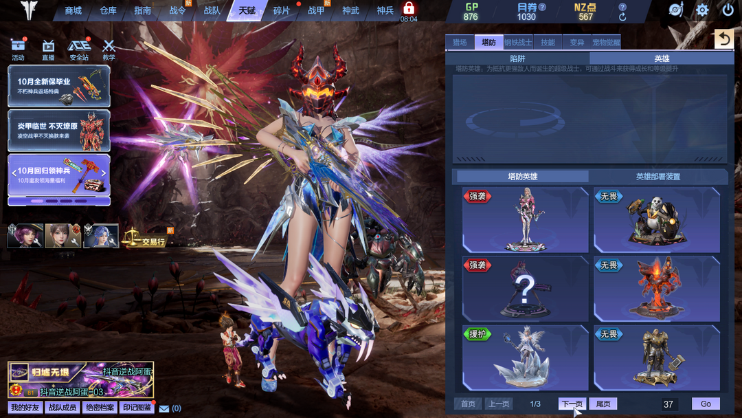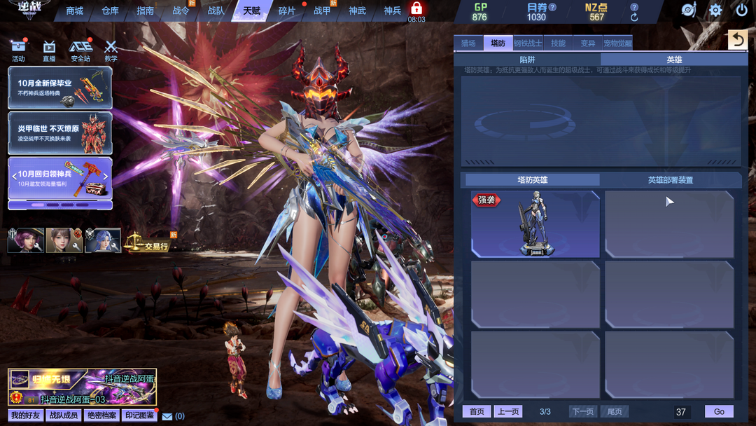 龙曦凌霜影刃三臂铠焚宵掘金璃鸢10英雄陷阱塔防全装|S级战甲飞羽天耀套 山海套 幻海套 天启左轮|冰