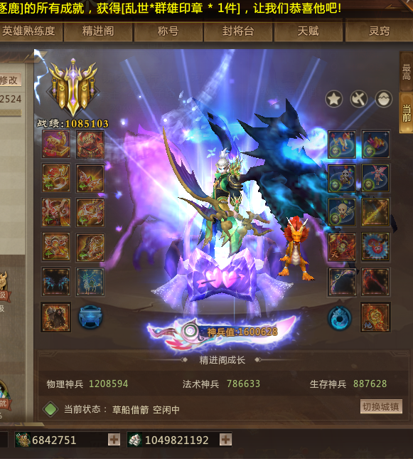 160万神兵尊6 三套12章装备 主物理套 海量玩具 看图4年少皮肤吕布黄忠马良韩当 皮肤623个