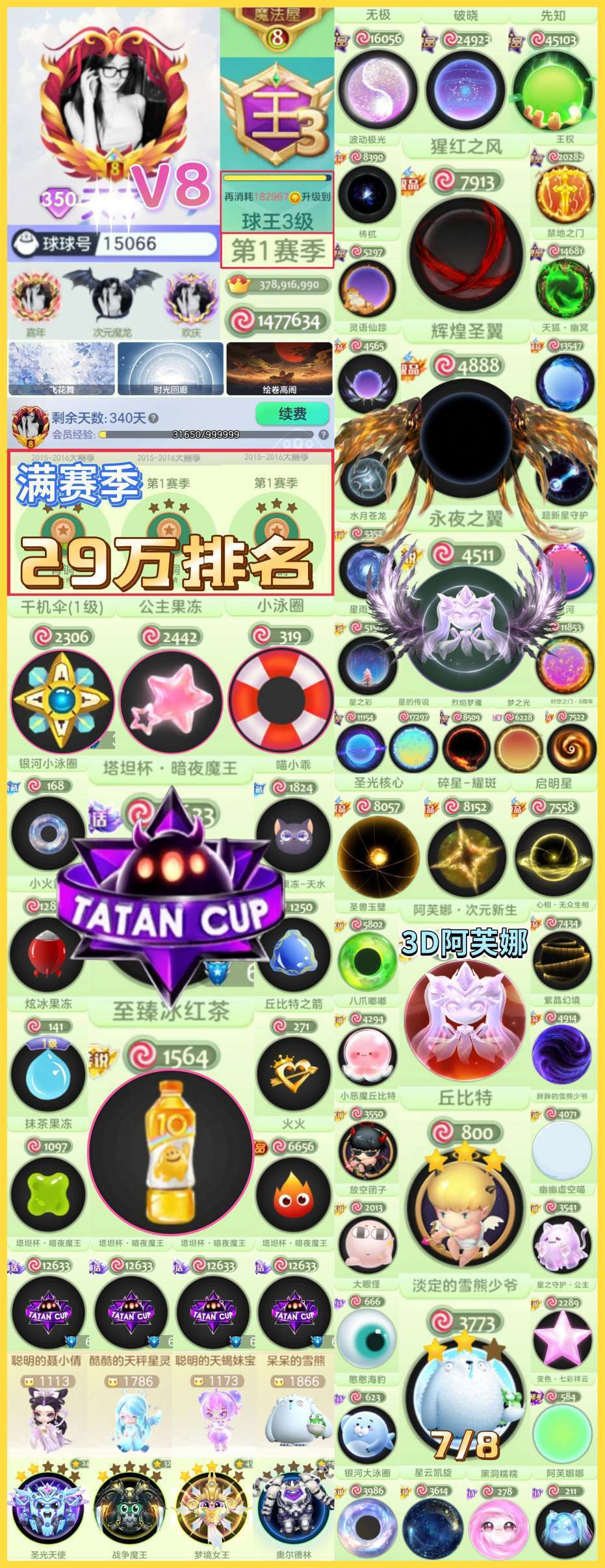 【暗夜塔坦杯】无敌满赛季29万排名⭐️满级丘比特/幻化3D阿芙娜⭐️冰红茶袍子/泳圈/千机伞/公主