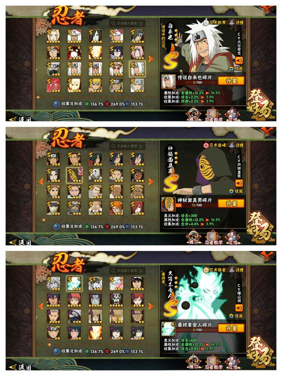 虎皮帽子,九喇嘛水门,新高再不斩,土台,六尾鸣人,漂泊带土,黑绝,2160W战力42S72A