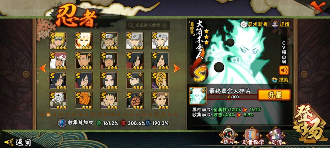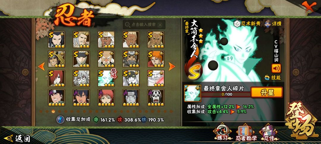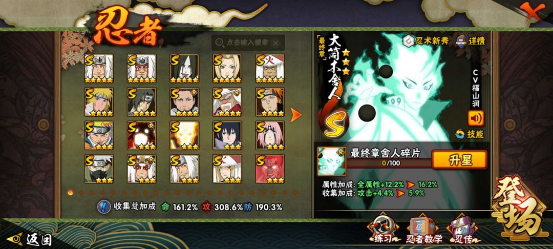 全高招55S三千万战力✨金身水门✨五影会谈斑✨仙人巳月✨秽土再不斩✨暴怒六尾✨机械鸣人✨全高