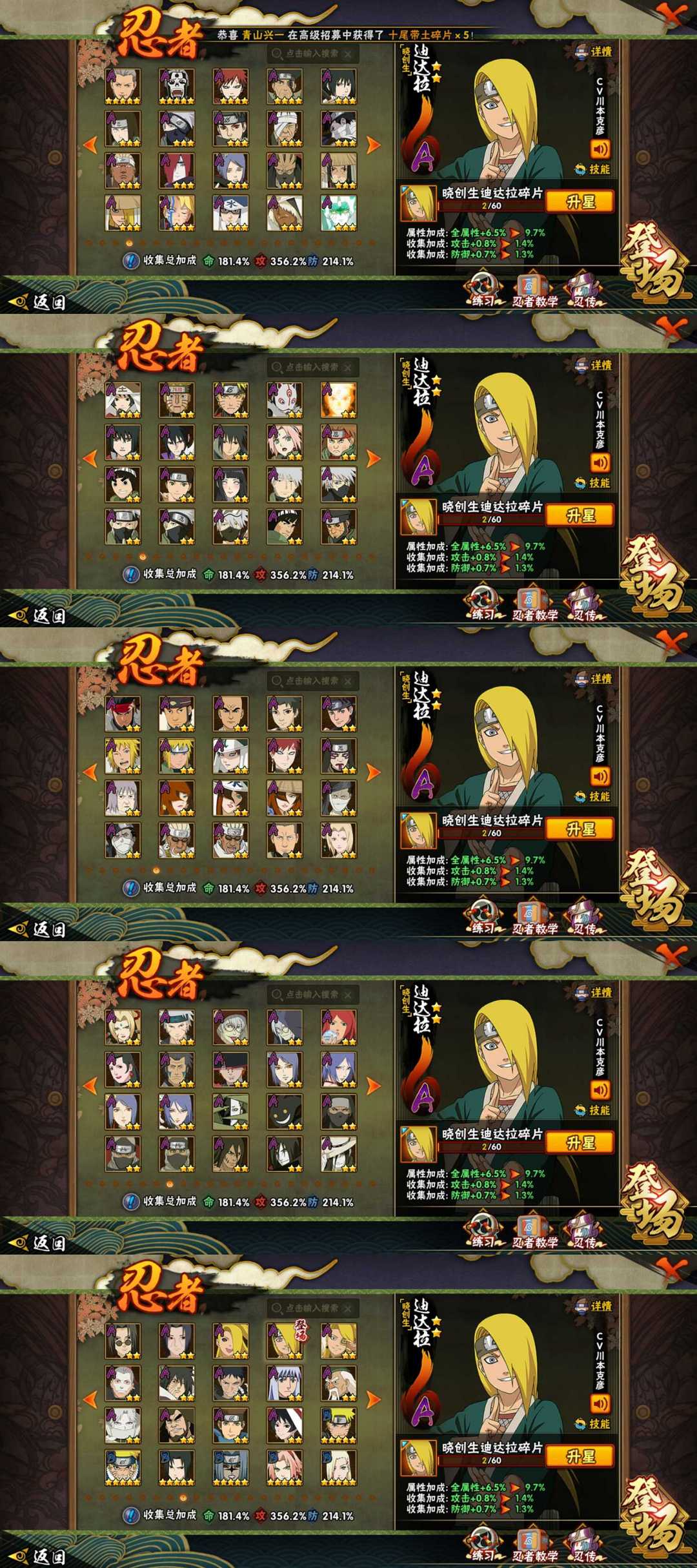 晓创生迪达拉已秒!⭐神驹阿斯玛⭐十尾带土⭐五影会谈斑⭐⭐3200w战力⭐全S忍412忍者⭐全忍法帖