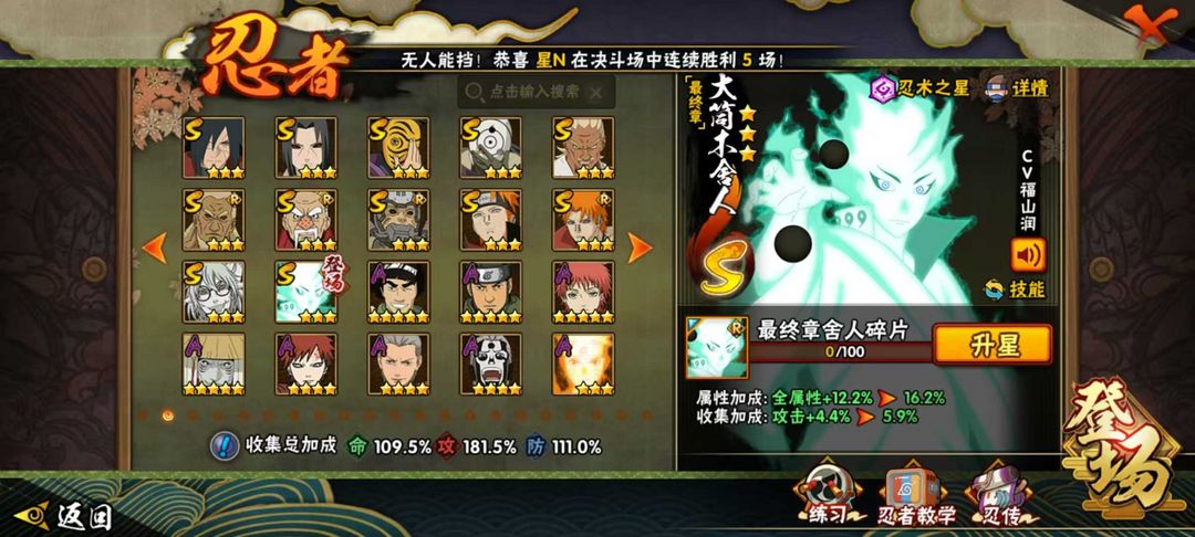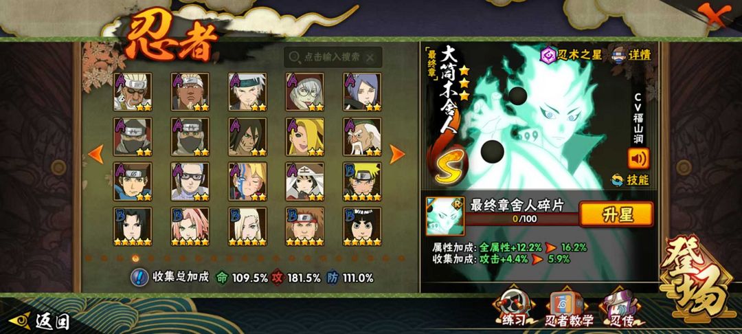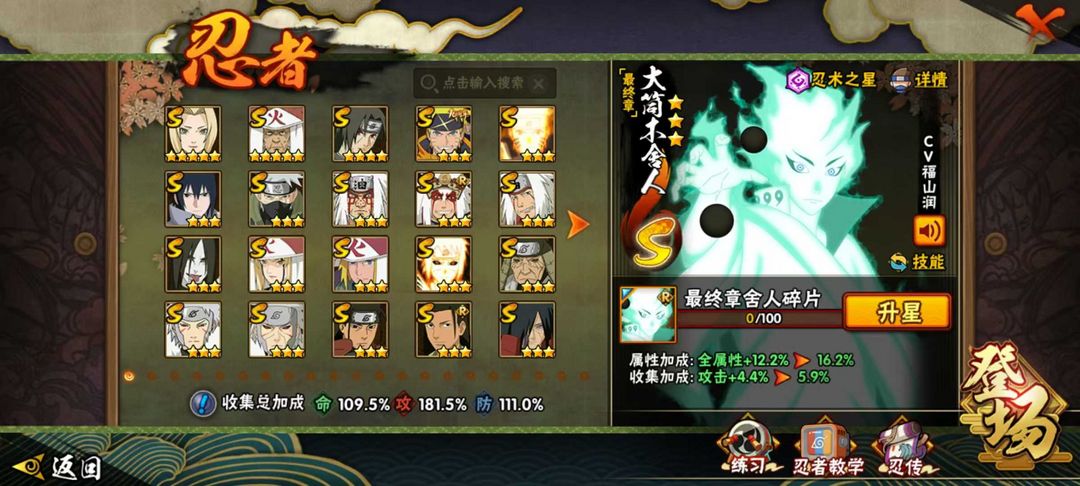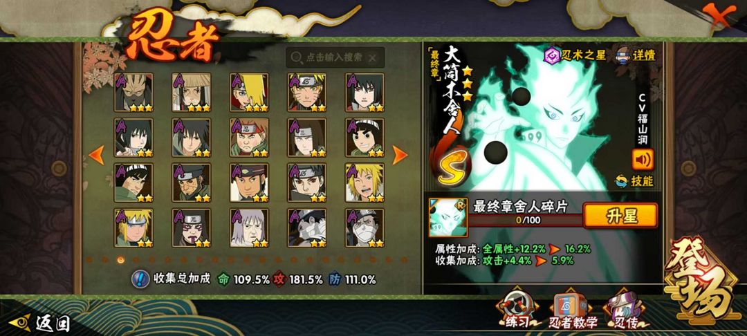 九喇嘛水门⭐32S⭐传说自来也⭐须佐卡卡西⭐大筒木舍人⭐忍战雷影⭐天道超⭐秽土解斑⭐漂泊扉间⭐爱情哥