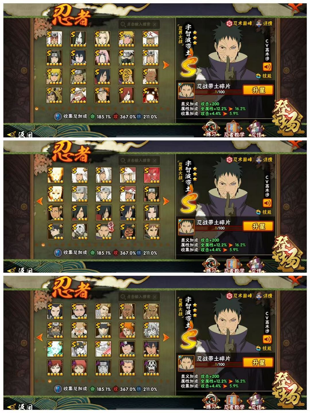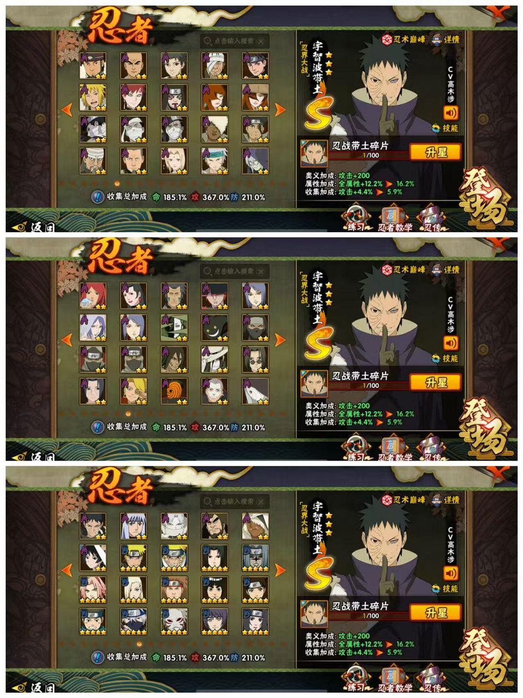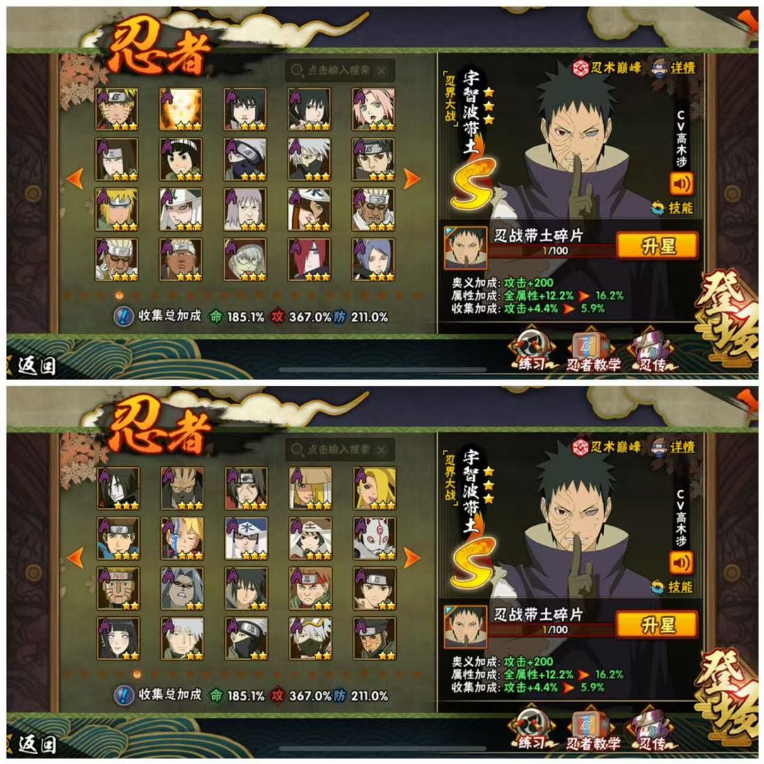 装备描述:九喇嘛水门/3650万/53s95a全忍者/夏日黑土/六尾鸣人/秽土再不斩/黑绝/神农/漂泊带土/传说自来也/烈斗/新春大蛇丸/大筒木舍人/须佐卡卡西 全通灵 准全忍者 全点券忍者 全忍法帖 全高招 忍战李 大筒木桃式
