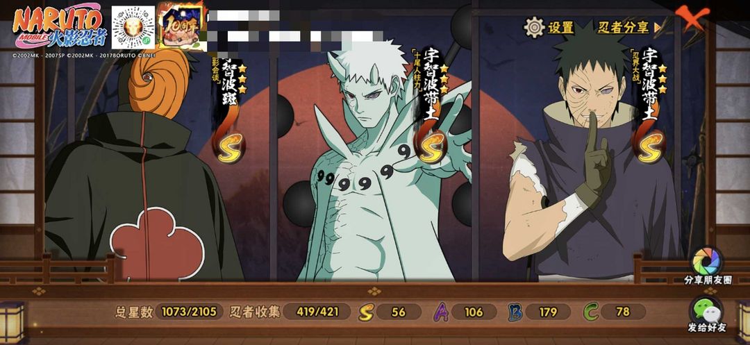 V区✨十尾带土已秒♋420真全忍者高配号♋3100w高战♋65阶魅力!