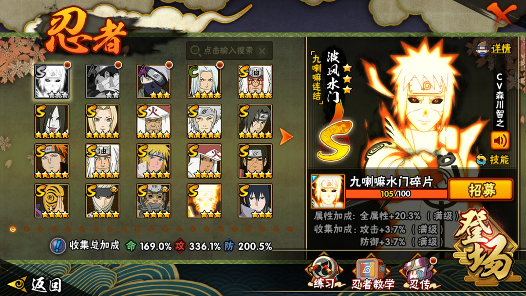 九喇嘛水门,须佐卡卡西,48S,V15,大筒木舍人,须佐止水,全忍者,白面具3050W,89A天道超
