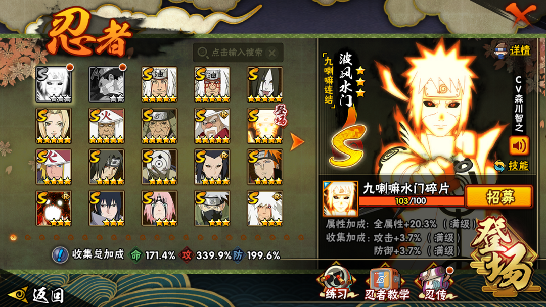 九喇嘛水门❥暴怒六尾鸣人❥[50S;V15;3140W;94A❥全忍者须佐卡卡西❥大筒木舍人❥天道超