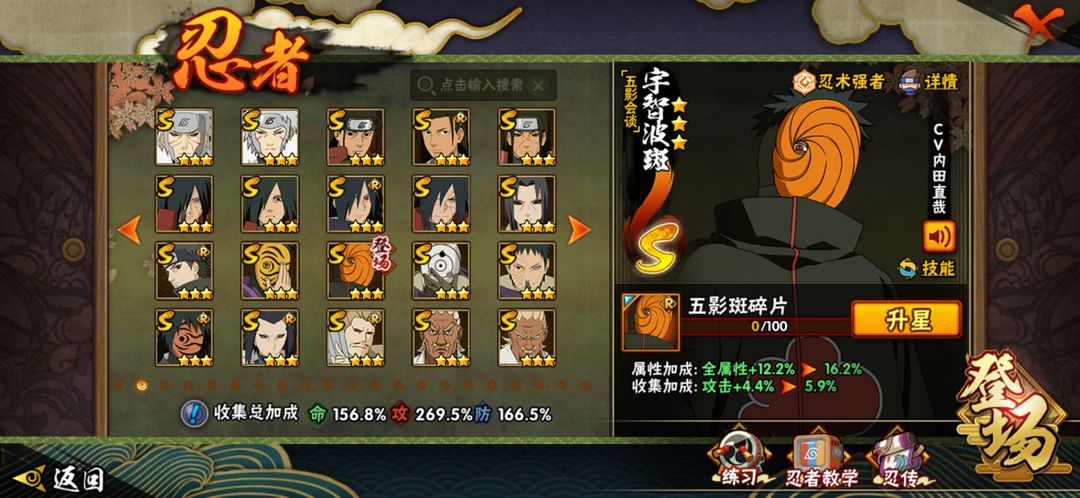49S 五影带土-六尾-传说自来也-舍人-百战鼬-须佐卡卡西-须佐止水-断臂雷-盾-绯流琥