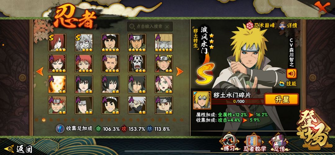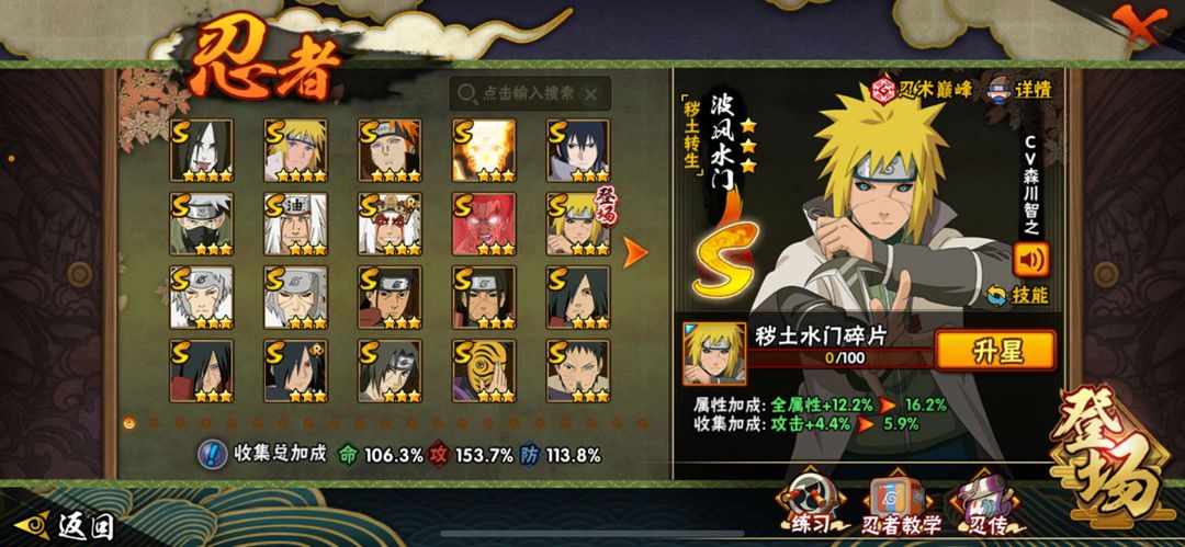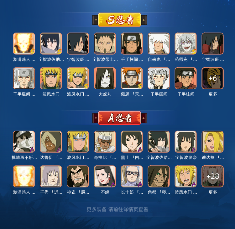 22S 忍战带土须佐卡卡西秽土扉间秽土水门九喇嘛鸣人死门凯天道佩恩千手柱间自来也自来也秽土柱间