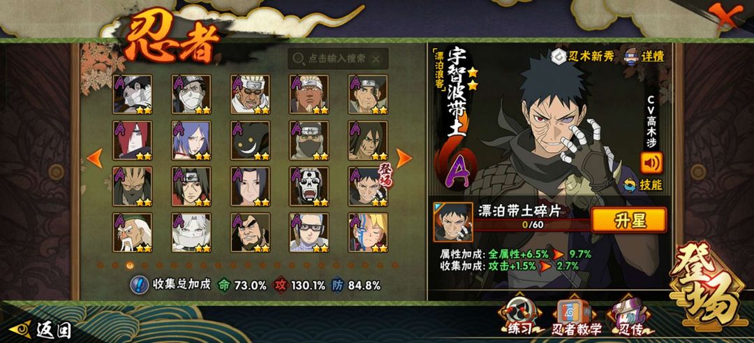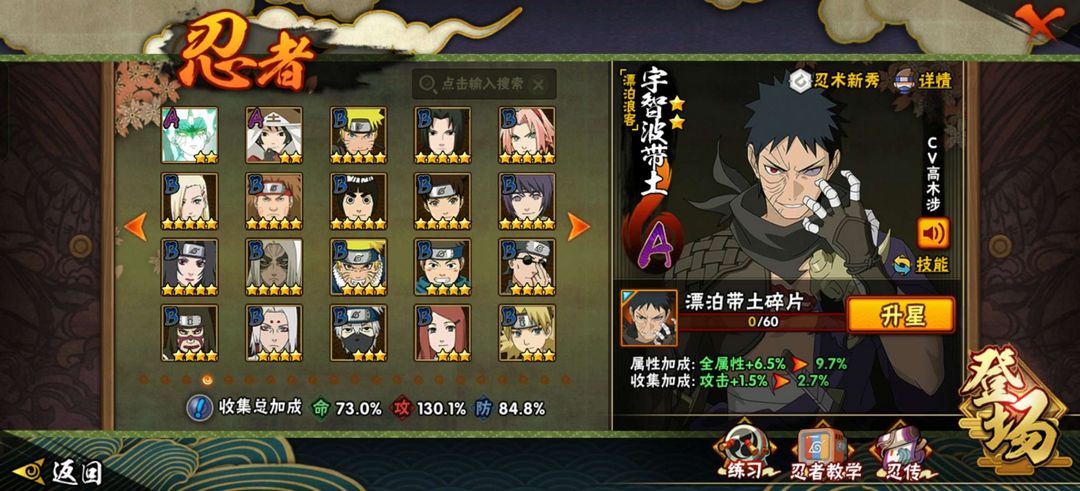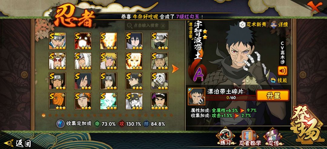 19个s,43个a,黑绝,秽土柱间,秽土老三代,黄猿,紫狗,漂泊小南,漂泊带土,无影班,九尾水门等等