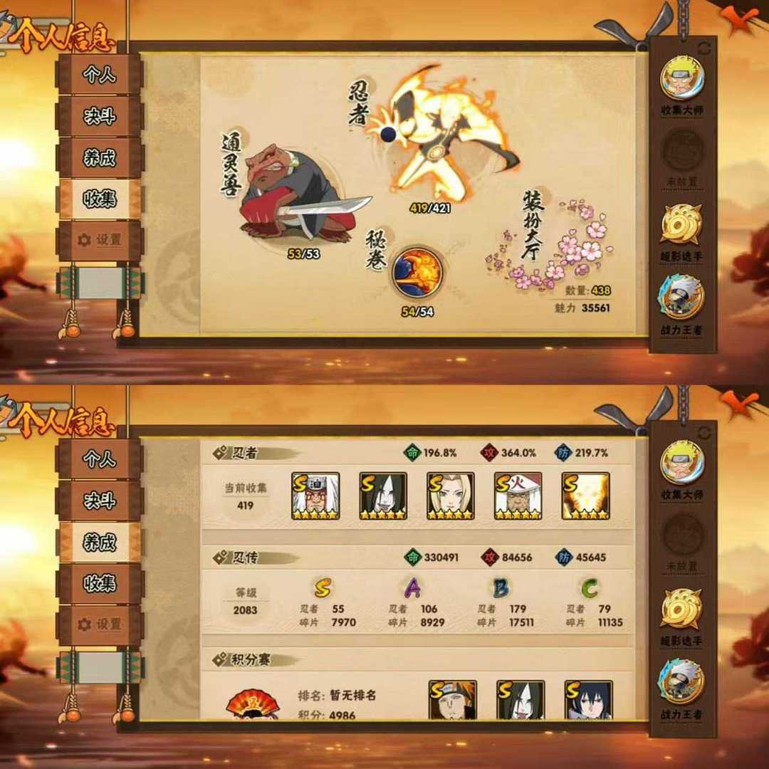 差1个全忍者❤️超高魅力❤️黑绝 全套侠隐佐助❤氪金5万❤️满通灵❤️传承奥义多❤妙木山