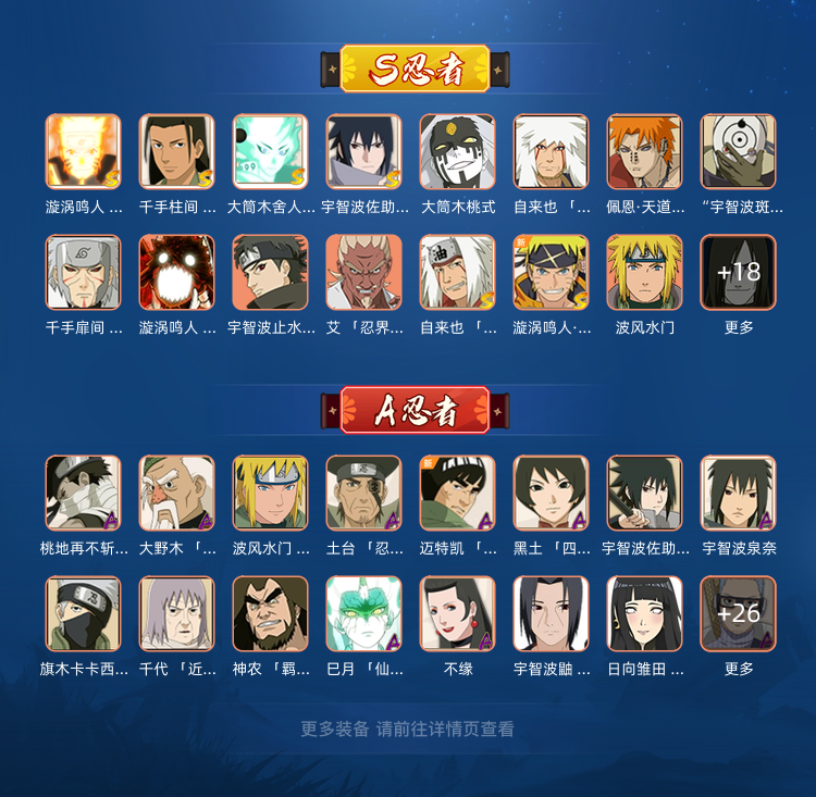 35S42A,战力1750w天道超,夏日鼬,漂泊小南,忍战卡卡西,秽土长门,五影斑,秽土扉间