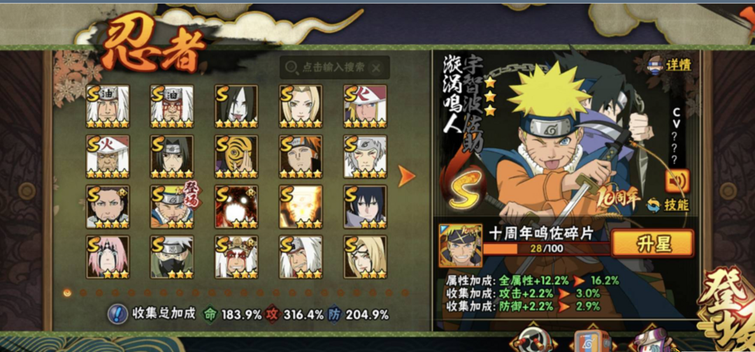368忍者55S三千二万战力✨黑绝五影斑十周年鸣佐暴怒六尾九喇嘛水门✨三代目舍人须佐卡卡西多点卷高招