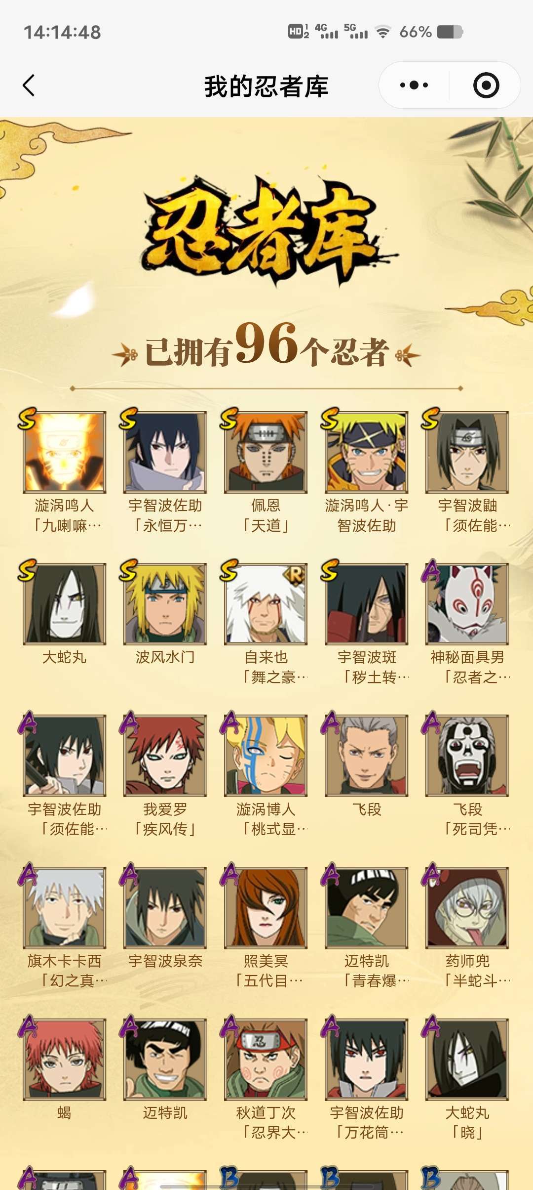 9S 18A 九喇嘛鸣人 永恒佐助 秽土斑 面麻 晓蛇 鹰佐 金鸣 须佐佐助 桃博