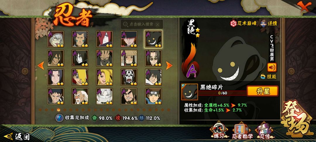 装备描述:123万战力,241忍者30s55a忍战带土,破灭带土,红夜带土等各种s及直售A
