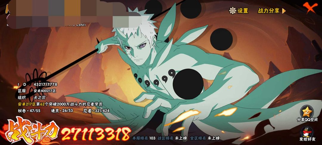 十尾带土☀️金身水门☀️50S近全忍者☀️3000w战力☀️天道超☀️黑绝☀️六尾鸣人☀️漂泊带土
