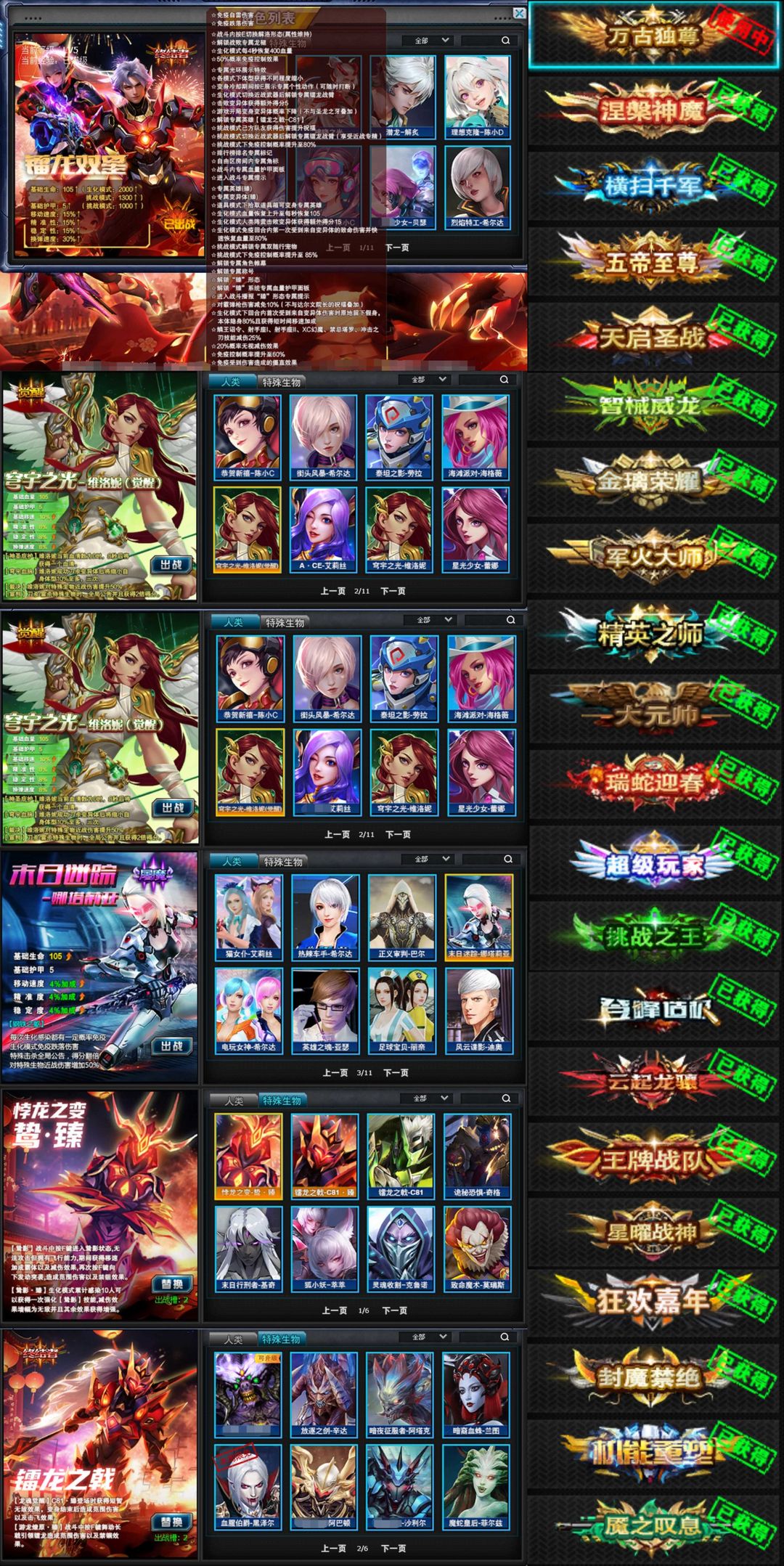 五阶镭龙✨有龙则灵百战红樱 ✨道具全开✨赤血冲击✨鳞王诏令✨涅槃封魔✨狂狮朱雀✨阿喀琉斯幽星套