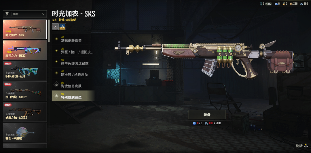 二级密码456789✅④级时光加农SKS✅①级魔咒之力MK12✅鎏金王朝M762✅破碎元素AKM✅金