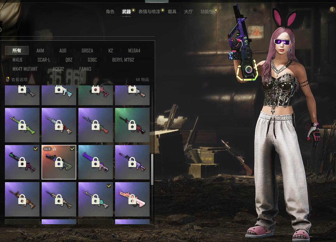 限制: 租号5次及以上 | 撤单率<60%才可租用此帐号装备描述:新女团五神器悲喜柏林九级火麒麟五级显卡AUG阿斯顿马丁三级八戒m4赛+博mk12八戒m4小叮当手套五种烟雾皮肤