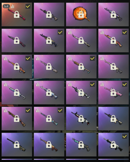 装备描述:④级午夜惊魂✨可排位✨湮灭M24✨WIA联名双马尾✨女团联名套✨战术科技套✨PGC皇帝套✨白色运动套✨已购PLUS+✨镀金SKS⚡分秒必争M4⚡死亡六进制套⚡绝地求生