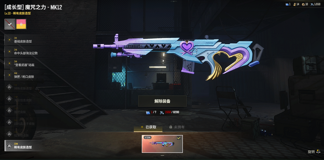 ④级魔咒之力MK12✅渗透AKM✅完美角度98K✅金色落叶M4✅黄金齿轮M762✅金色落叶SKS✅大
