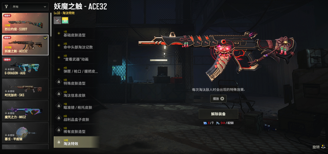 二级密码112233✅④级妖魔之触ACE✅①级烈日灼烧S1897✅灵魂枷锁AKM✅湮灭M762✅连战