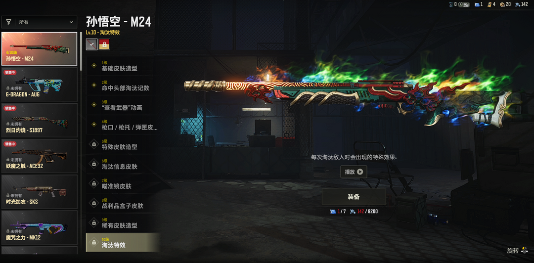 ④级无信号M4✅灵魂枷锁AKM✅十字军SKS✅猪八戒AWM✅大理石SLR✅幸运骑士M24✅无拘无束莫