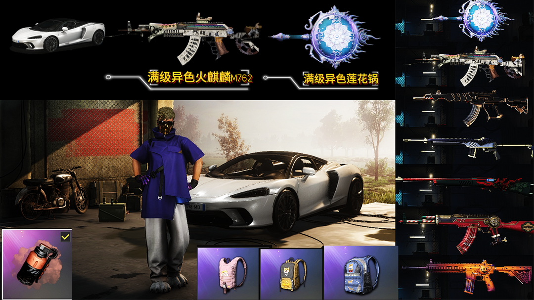 装备描述:---家里不要租 家里电脑玩不了--- 【2满级7神器】迈凯伦/满级异色火麒麟/满级异色唐三藏锅/孙悟空M24/南瓜M416/妖魔之触ACE32/圣诞AKM/沙悟净MINI/彩色烟雾弹/滑雪镜/柴犬帮背包/红大吉大利衣服/音响舞/