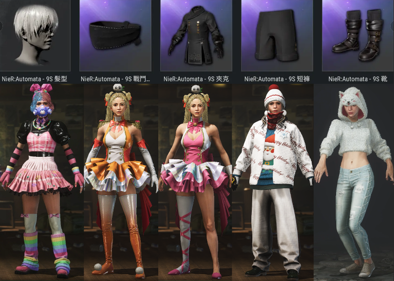 装备描述:瀚娜/尼尔9S套/魔力甜心套橙加粉/发光套【五成长武器-②无信号M416-水麒麟M762-午夜惊魂98K-弥诺陶洛斯AUG-粉梦德拉贡】圣诞之子套/白猫柴犬套装/王牌M762/猛虎SLR/无慈悲K2/分形SKS