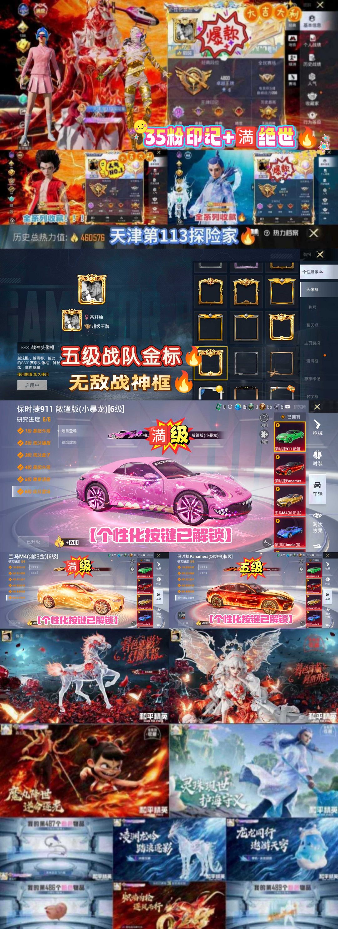 极品ID茶籽柚 暮色玫影 满级哪吒18套全红 老101保时捷无垠阁金标47万热200粉25车⑩升级车