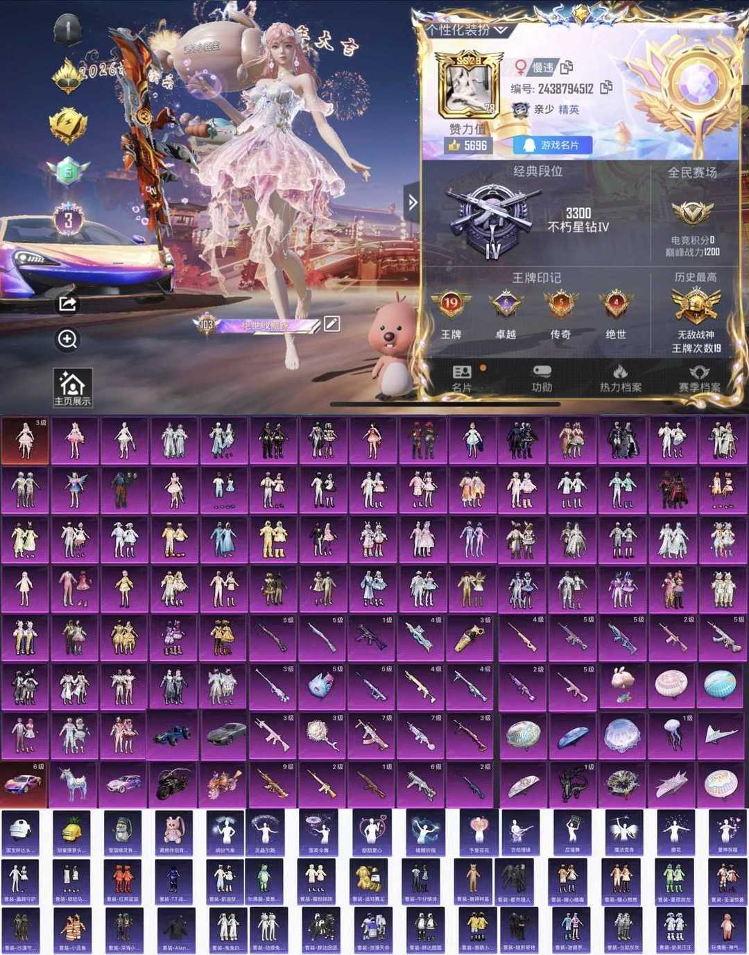 包天三折妹妹号❤️73粉27枪7车战神框满级迈凯伦3级水母小丑雪国巧克力猪妹番茄金鞋胖达黑丝粉熊包