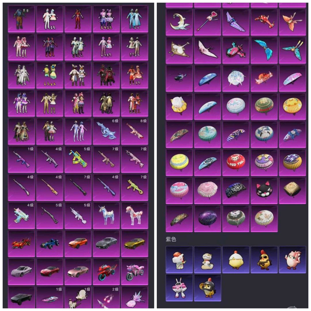 8级暮色玫影AK艾丽娅图卡盟怪诞小丑雪国螳螂6级星梦木乃伊14枪14车1飞机24粉4套追光满级飞行