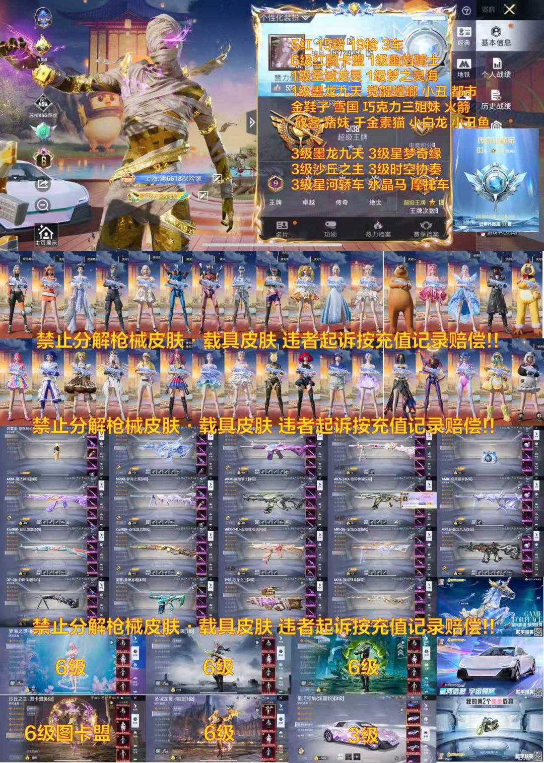 5红15粉19枪3车 6级图卡盟 龙灵 维塔 梦之灵海 墨龙九天 觉醒螳螂 小丑