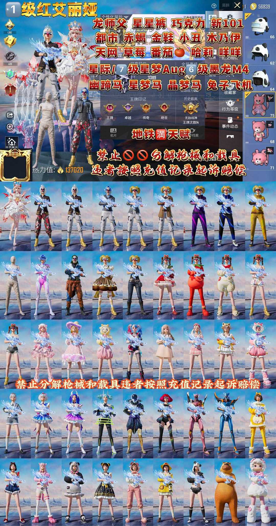 限制: 租号8次及以上 | 撤单率<60%才可租用此帐号装备描述:特别声明!!!! 分解枪械永久拉黑不解除 【乱投诉拉黑】有问题/上不去/其他问题/ 特殊需求/投诉没用等问题 账号累计充值超10万!切勿开挂/分解装备/恶意骂人/等等违规行为,发现违规必追查到底(平台登录记录,游戏登录ip手机号 设备串号 充值付款记录不要侥幸现在网警都能调到你的所有行为记录就算盗用他人信息也一样能查到你头上)按账号充值金额=起诉/刑事立案/追责赔偿! 非速玩【非云!本机设备畅玩不卡顿】