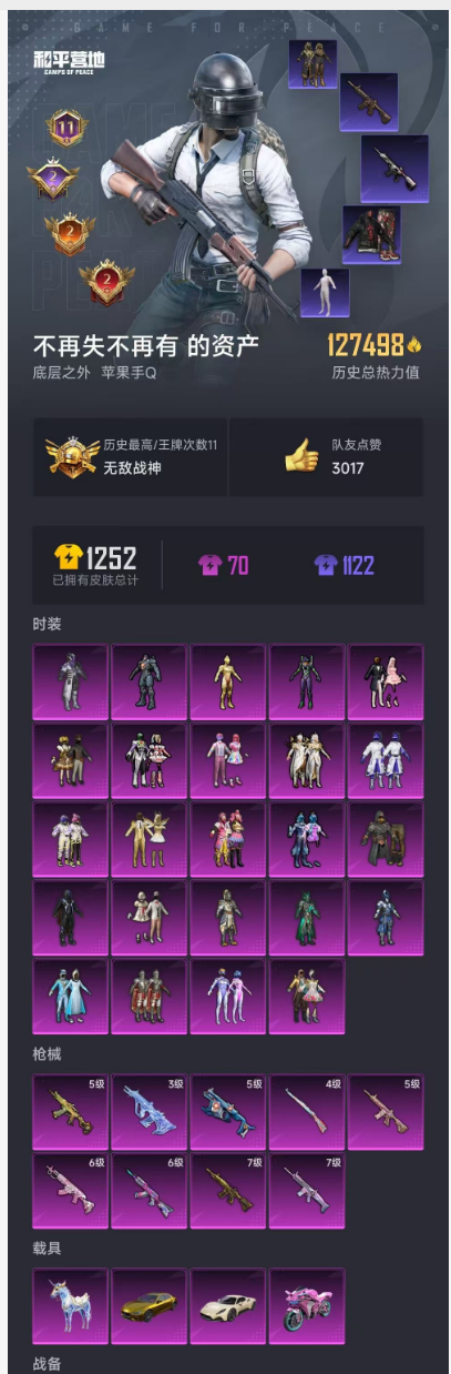 限制: 租号3次及以上 | 撤单率<50%才可租用此帐号装备描述:战神框 24粉-9枪-5载具 木乃伊 紫螳螂 雪国 都市赤蝎金鞋 黑丝 金迪迦 胖达圆圆 极限特训 红眼罩 巧克力 深海小丑鱼 胖达团团 新101 猪妹 萌熊背包 猫包 3级AUG星梦奇缘 M416-黄金龙骨 M416-星际漫游 7级五爪金龙 7级梦幻火箭 金玛莎 水晶马