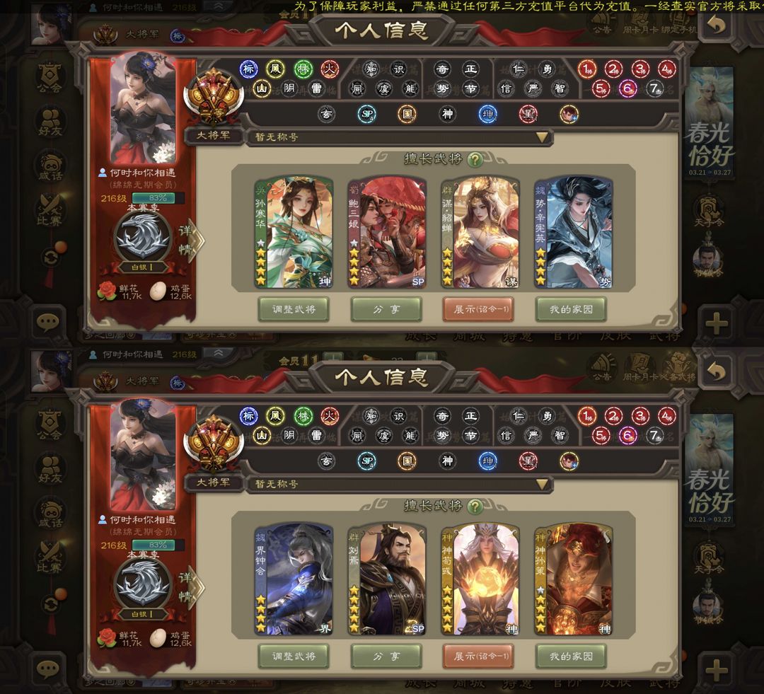 装备描述:每天查逃跑,发现一律拉黑!希望您不逃跑(现在逃跑会封号),不逃跑的素质租客,30内不挤您(全行业最良心的),文明租号双赢!欢迎收藏长租~巨头大将军/动态刘焉/回廊神荀彧/动态神郭嘉/动态神甘宁/回廊神孙策/双形态界钟会/回廊谋貂蝉/文鸯/谋黄盖/杨彪/孙寒华/马钧/鲍三娘/傅佥,有天宫武将阎象,三卡充足,零逃跑,体验感好!