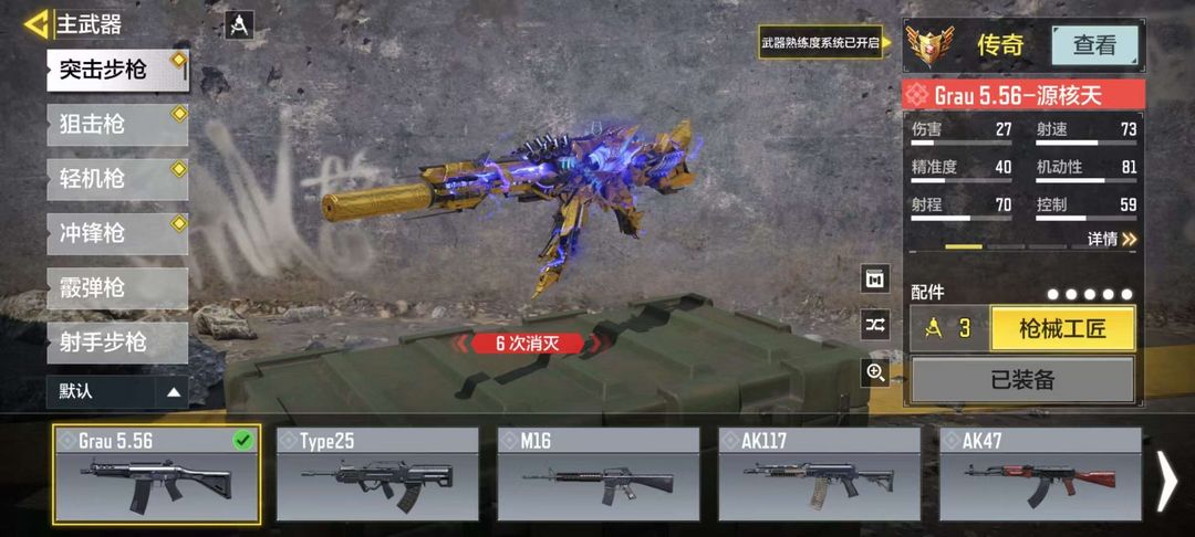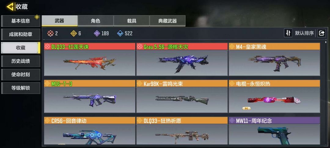 Grau源核天灾(1级),Q33红莲天珠(3级),M4皇家黑魂,M16T–3,98K雷鸣光束